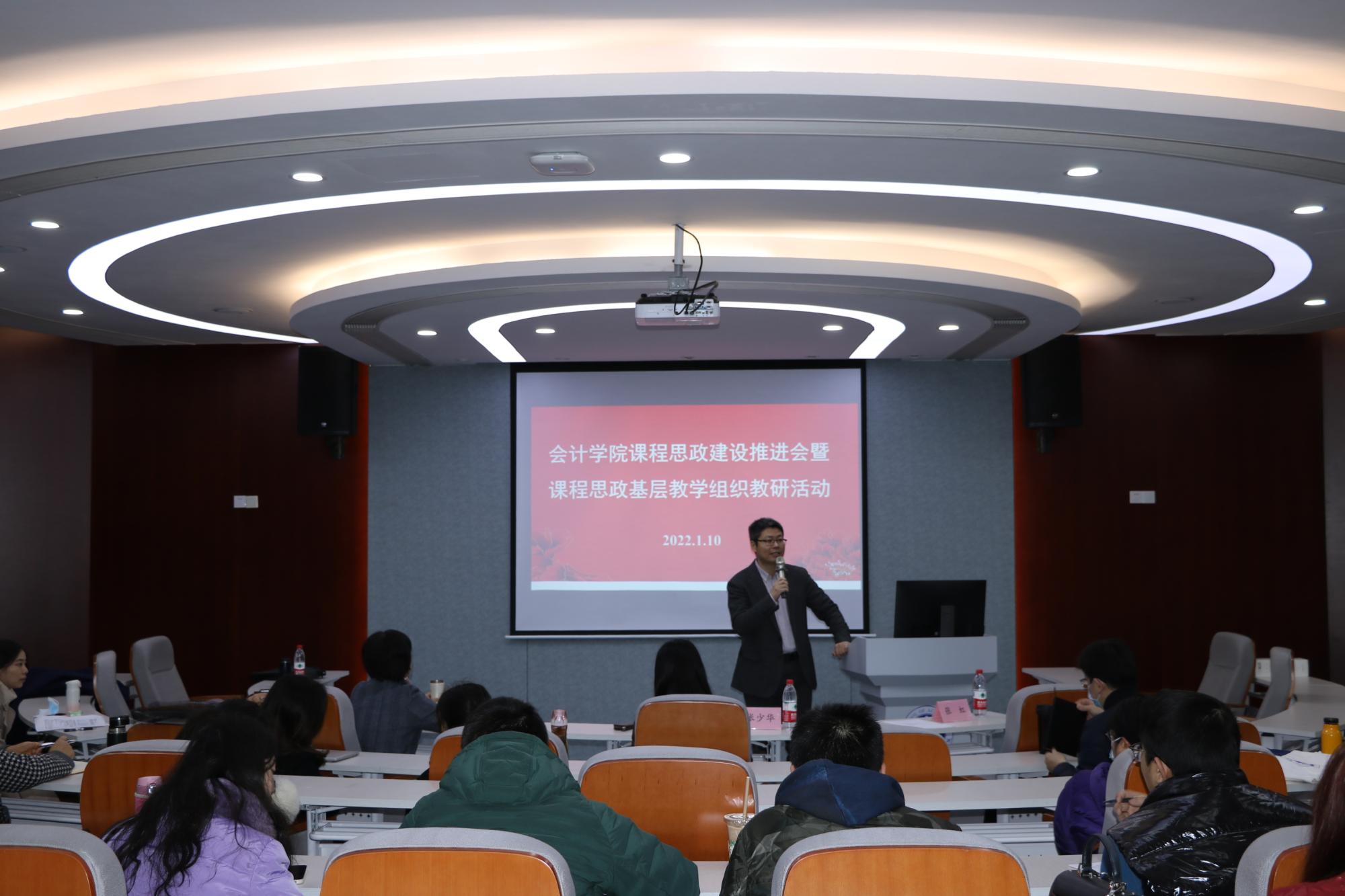 2022年1月10日上午,公司在公司111报告厅召开课程思政建设推进会暨课程思政基层教学组织教研会。公司课程思政研究中心首席专家邵毅平教授、教务处副处长张少华、课程思政教学研究中心成员及近三年入职青年教师参与研讨。