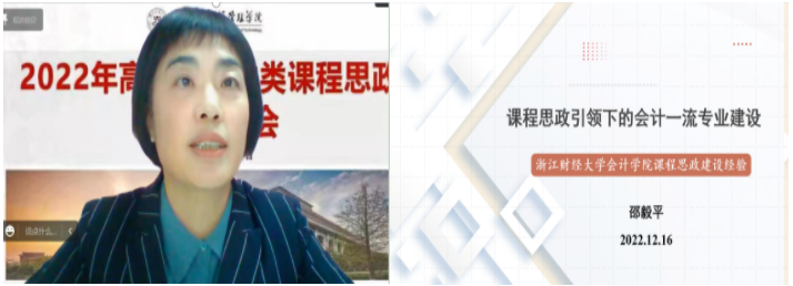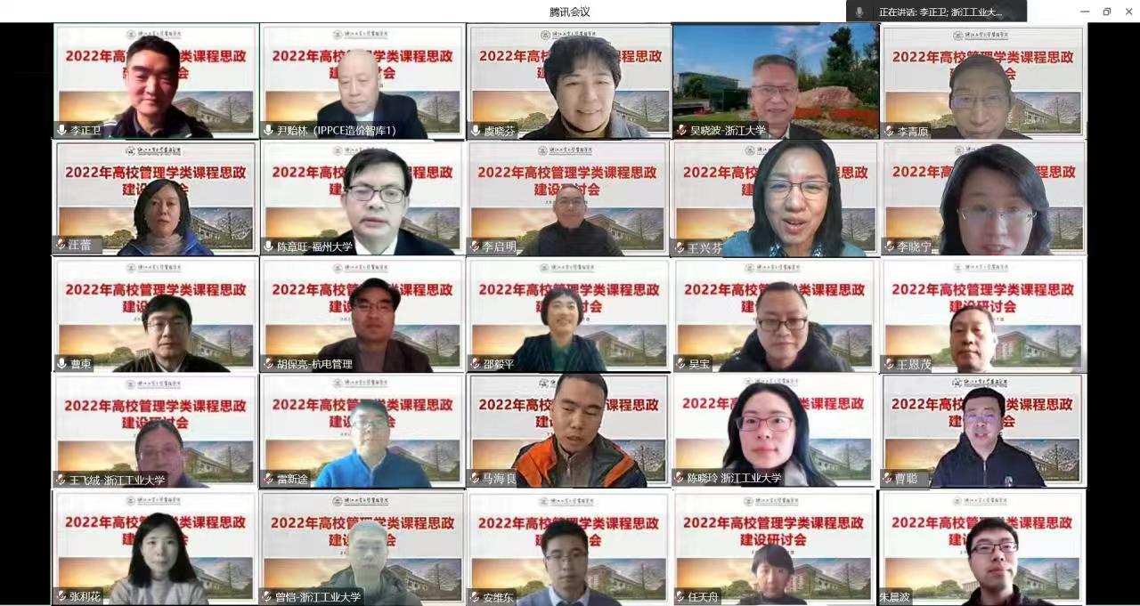 1217日,2022年高校管理学类课程思政建设研讨会在线举办。会议由浙江省管理学类相关专业教学指导委员会和浙江工业大学联合主办、浙江工业大学管理公司承办。本次会议主题为“课程思政与一流专业建设”。来自浙江大学、武汉大学、东南大学等高校的十余位专家学者分享了课程思政背景下的专业建设与课程建设经验。